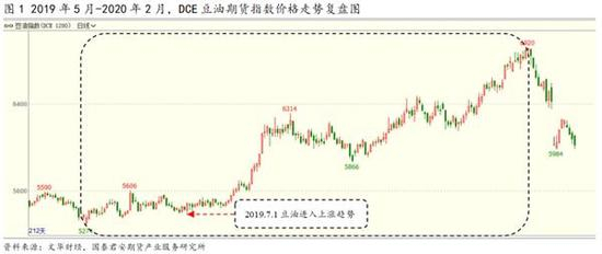 本轮豆油价格或已经从前期上涨周期转为下降周期。2020年2月14日,DCE豆油主力2005合约创下春节后新低5900元/吨,较2020年1月10日高点6950元/吨下跌1050元/吨,跌幅约15.11%。我们在2020年豆类年报《粕上油下风展红旗如画》中指出:本轮豆油价格阶段性见顶时间早则2019年12月,晚则2020年1月。我们在2月4日报告《信心比黄金更重要豆粕具备投资价值》也指出:2020年1月上旬豆油或已阶段性见顶。目前而言,我们维持前期判断,DCE豆油期货价格在2020年1月10日高点或已成为阶段性高点,本轮豆油价格或已转势。同时我们认为,目前豆油下跌趋势刚刚开始,虽然由于疫情扰动,下跌速度相对偏急,后期可能会有反弹,但是这也仅仅是下跌趋势中的反弹而已,并不改变下跌趋势。回顾本轮豆油的上涨周期,我们曾在2019年8月报告《豆油:你若盛开清风自来》中指出:豆油进入阶段性上涨趋势,并且将本轮豆油上涨周期的启动界定为2019年7月1日。截至2020年1月,本轮豆油启动上涨周期已经半年有余,上涨幅度也达到28%左右(2019年7月1日至2020年1月10日,DCE豆油指数涨幅约28%),如果本轮豆油上涨周期从最低价格开始界定,即2019年5月6日DCE豆油低点价格5274元/吨,那么截至2020年1月10日DCE豆油涨幅约31%,时间周期约8个月。豆油在6-8个月时间周期中完成30%左右的涨幅,可以说也已经完成了一次较为完整的上涨周期。目前随着豆油转势,我们也就不必再过多停留在前一次上涨周期的回忆,或许我们更多的应该关注目前豆油下跌周期的情况,以更好的把握本轮豆油下跌周期,所谓:不念过往,不畏将来。