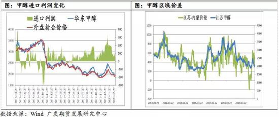 2、原油价格下跌对甲醇的影响主要是国外甲醇的生产成本以及港口甲醇制烯烃项目的盈利性,进而影响甲醇30%的需求。2014年、2015年、2018年原油均出现单边持续性大幅下跌的行情,布油分别下跌57%,46%和40%,同期天然气分别下跌37%、26%和1%,甲醇分别下跌23%、29%和27%。整体上原油的波动幅度相比下游产品更大。国外甲醇均以天然气为原料,近期天然气价格下跌10%,甲醇生产成本也相应下移,不过目前的外盘价格折算人民币为1950元/吨左右,尚无达到国外的生产成本(1300-1500元/吨左右)。此次自1月21日以来,原油价格大幅下跌,乙烯和丙烯价格下跌17%和7%左右,油制聚烯烃成本下跌至5000元/吨左右,造成港口甲醇制烯烃的天花板下移,如果外购乙烯和丙烯更有经济性,那么甲醇的需求将会大幅减少30%,那么甲醇价格最低有望触及到1600元/吨一线。目前煤炭价格相对稳定,国内甲醇生产企业开工率恢复,甲醇国内供应暂稳定,甲醇生产企业已经接近成本线,如果甲醇继续下跌,甲醇生产企业再次降负荷减产的可能性变大,甲醇供应如果减少10%对甲醇价格的影响在10%左右。根据目前的聚乙烯和乙烯单体价格,港口甲醇制烯烃的可接受甲醇价格下移至1600-1800元/吨,在悲观情绪笼罩下,甲醇价格将低位运行。