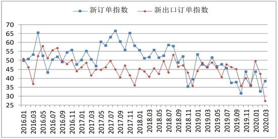 图2 2016年以来新订单指数、新出口订单指数变化情况