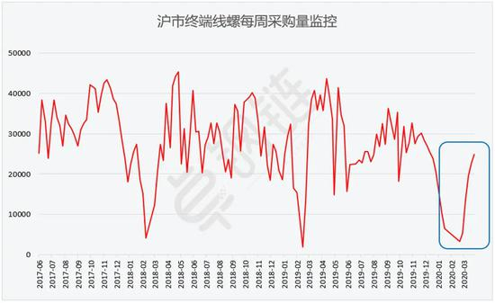 图3 2017年6月以来沪市终端线螺每周采购量监控变化情况
