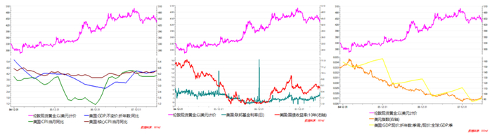 在2005—2006年,美债实际利率上涨、震荡,美元指数反弹,黄金价格仍保持上涨。