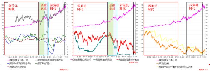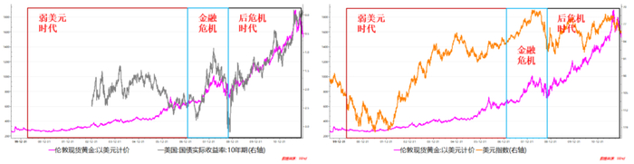 2009—2011年的后危机时代,受实际利率下降影响,这一阶段金价大幅快速上涨。