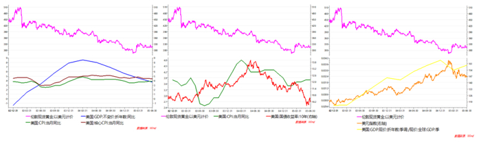 1)经济增速持续维持低位,美联储上一阶段的加息抑制了通胀上升,但美联储仍在折腾基准利率,继续加息再度抑制了通胀,但也压制了经济增长。美债长端名义利率随基准利率上行。弱势通胀叠加强势名义利率,实际利率出现了上升,压制了金价。