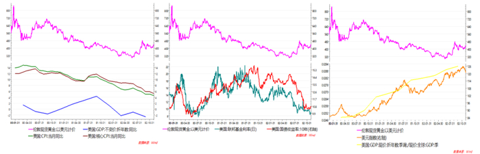 1)经济增长疲弱和通胀持续下降使得美联储开始降息,并成功刺激起经济增长。伴随联邦基金利率下降,美债长端名义利率快速下降,使得实际利率下降支撑金价。