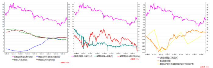 3)2015年二季度开始,经济增长下降,通胀抬升,但名义和实际利率反弹,压制了金价。