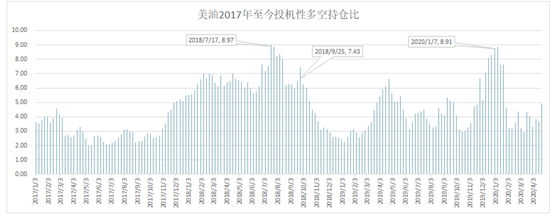 附图2017年至今投机性多空持仓比。