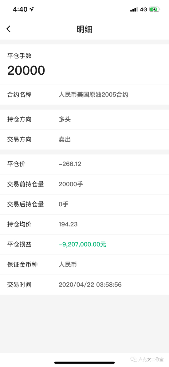 原油宝事件发生后,中国一些投资人遭到到血亏,本来这件事感觉是离自己很遥远的新闻,因为我自己只做实业,不碰金融,圈子里做金融的其实比较少,但前天看到朋友老苏(化名)在微信朋友圈晒了张他投资原油宝的亏损图片,一笔就亏损了920万,我以为他在开玩笑,问他是不是真的在原油宝里亏损了这么多,他说不是,实际不是亏损920万,总共是亏损了1037万,920万只是其中一笔,还有一笔亏损了117万,总计1000万出头。