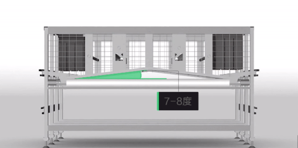 所有的蛋鸡都住在同一个豪华大宿舍里,这个宿舍多为3层床位,底部是倾斜的格网,格网末端是沟状的蛋槽,笼底坡度在7-8度之间,小于7度,鸡蛋不能轻松滚出;大于8度,鸡蛋则会因冲力过大而破损。