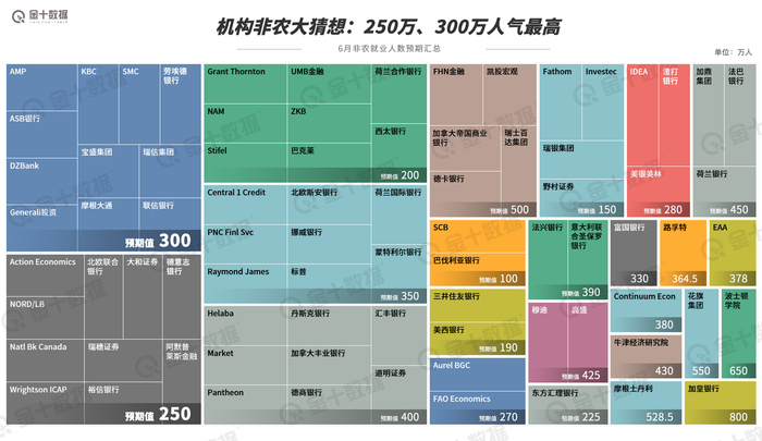 在数据公布前,金十特意为大家整理了各大投行对6月非农数据的预期,详情如下。