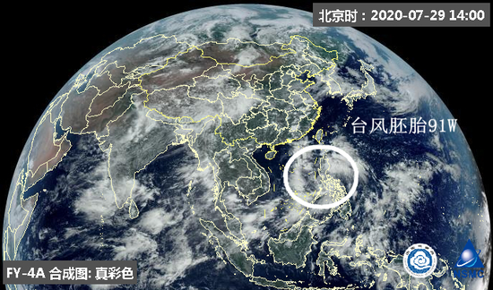 △目前台风胚胎91W结构比较松散。图片来源:国家卫星气象中心