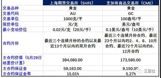 有能力、有经验的朋友,可通过上海期货交易所(SHFE)和美国芝商所(CME)参与黄金期货交易,两家交易所的黄金期货合约基本要素如下: