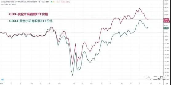 GDX和GDXJ是规模最大的两只黄金股票ETF,它们出自同一家基金公司,管理费率接近,但GDX规模是GDXJ的数倍,今年以来GDX的回报率也大幅跑赢后者。