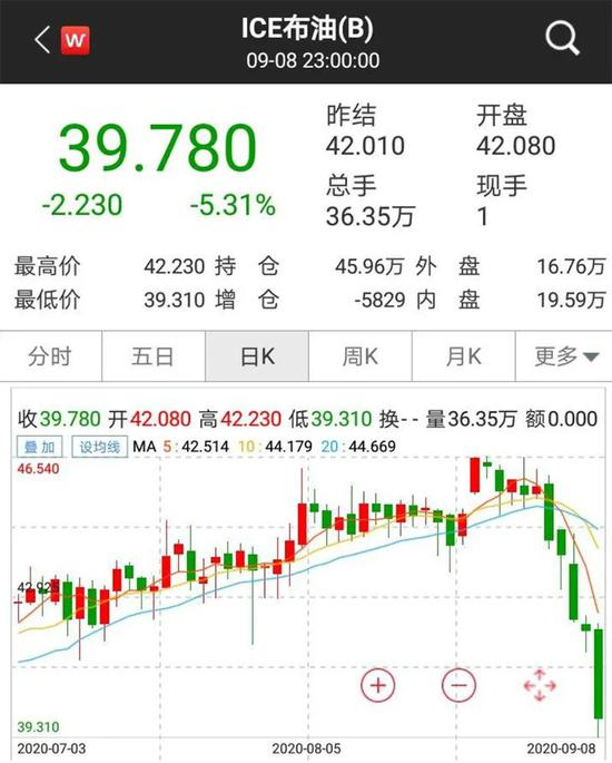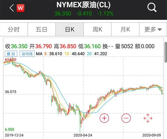 截至美国东部时间9月8日收盘,NYMEX原油期货收跌7.37%,报36.84美元/桶,创6月12日以来新低;ICE布油收跌5.31%报39.78美元/桶。