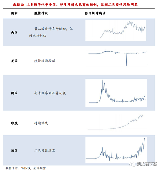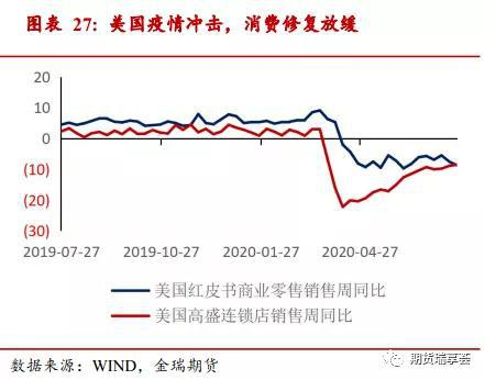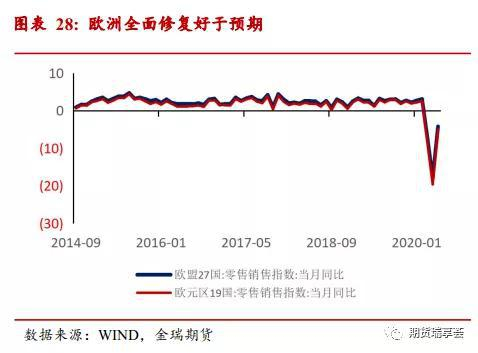 疫情影响出口目的地国家经济修复节奏,仍是下半年出口的最大风险。目前看主要经济体中,欧洲的疫情情况较为稳定,美国受到疫情二次反复影响较严重,已经造成了欧洲和美国经济需求端修复不一致:美国超过20个州宣布暂停或推迟经济重启措施,对服务业、消费冲击较大,7月零售业景气度持续回落;欧洲7月零售业景气度持续回升,强于预期,好于美国。尽管美国在大选背景下重新封闭经济的可能性不大,但如果疫情持续恶化有冲击海外需求,拖累出口的可能。
