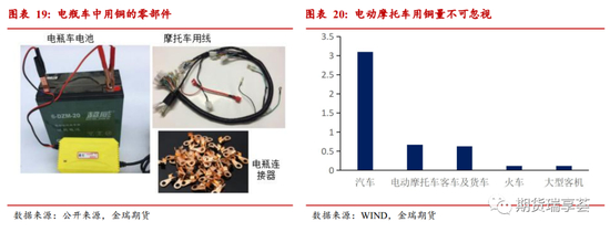在传统的分析中,交通中的铜消费主要是指各类汽车和客车,但近几年电动摩托车的出口增速较快,容易被忽视。2019年汽车出口的耗铜量在3.09万吨左右,客车出口用铜在0.63万吨。在这次的研究中我们覆盖了被忽视的其他交通工具,一是电动摩托车(脚踏车),2019年出口1334万辆,根据废品回收站的调研,单辆电动车用铜线约0.5-0.8KG,以此保守估计用铜量约为0.67万吨。