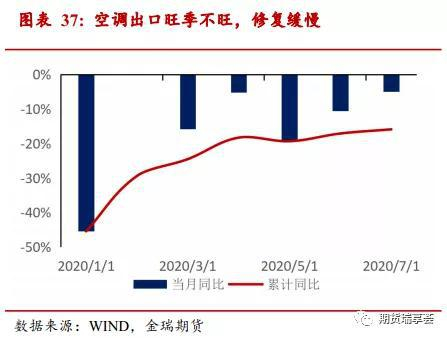 大家电与汽车均属于耐用消费品,今年以来出口持续修复,但修复仍较缓慢,同比尚未转正。空调2020年1-7月累计出口3524万台,累计同比降15%。从单月同比来看,3-4月可能赶工1-2月受疫情影响的订单,出口修复较好,但5-6月可能受海外疫情严重、订单趋缓冲击,出口修复并不明显。从空调出口的季节性来看,往往上半年是旺季。今年由于受疫情冲击影响,空调出口旺季不旺,4季度增速可能不会特别理想。