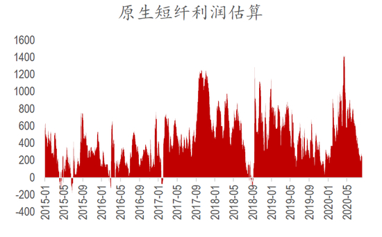 虽然涤纶短纤的价格与原材料价格趋势趋同,相关性高,但其利润的变化振幅并不小。从2015年至今的利润情况来看,大部分情况下短纤利润为正,最高时利润超过1000元/吨,也有出现位数不多的几次亏损。而剔除掉原材料价格的波动后,短纤利润的变化则是与其基本面因素息息相关的。