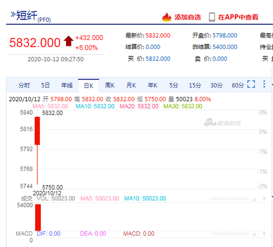 10月12日,经国务院同意、中国证监会批准,短纤期货在郑商所正式挂牌交易,交易代码为PF,首批上市交易5个合约挂牌基准价为5400元/吨。上市首日,短纤期货主力合约上市首日涨停,涨幅8%。
