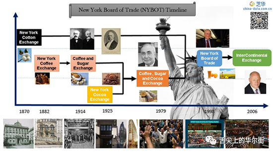 我们把纽约期货交易所100多年的演变,制作成以下的NYBOT时间线,供读者梳理清晰其复杂的历史变更。
