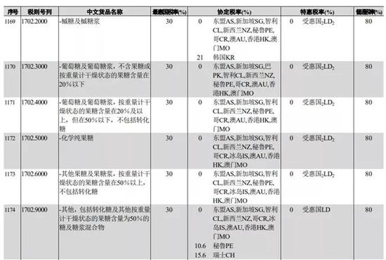 图6:中华人民共和国进出口税则(2020)液体糖进口税率表