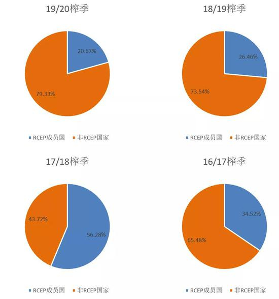 图4:近四年我国食糖进口来源国按照RCEP成员国分类占比