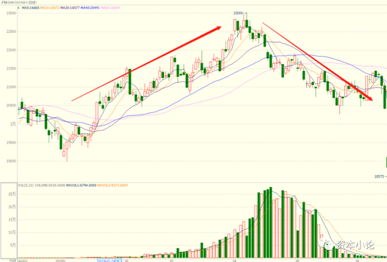但往往我们对行情的分析,更多的是建立在对于趋势的分析之上;我们也清楚,结构的转变也将意味着行情趋势的发生变化,只不过行情趋势的形成会循环往复,但只要结构已经发生实质性的变化了,那就代表了单边趋势的到来。就我们通常分析的那样,由Super Backwardation→Normal Backwardation→Flat Backwardation;如果已经走了这条路线,那就意味着逼仓基本上已经奔溃了,此时价格就会明显的回落,也就是我们前面说的,一地鸡毛。