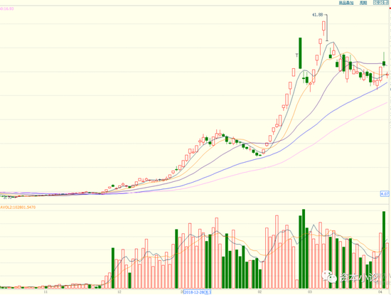 它的“天时”在哪呢?股市在经历了2018年的中美贸易战后从年初的3500点到了2440点的低位,成交量萎缩。当时有个事实就是:2018年5月16日的苹果期货成交量,更是达到了惊人的3579亿元,2倍于上证指数全天成交量,可见苹果期货市场的热度与疯狂程度,也可想而知上证市场交易的惨状。就这样,就这种情况一直持续到年底,可以说很多人都跌麻木了。直到2018年12月A股港股又被美元带下,A股创下新低。熟悉A股历史的都懂,A股以前就是政策市,当时有几大事件挺有意思,一是金融政策大放送,二是科创板的提出。其中内涵便不多说,经历过的大家都明白。所以在这种极佳天时之下,肯定会有一个“千金市骨”站出来,无论怎么涨,散户都会觉得正常,刺激着散户涌入市场来赚钱的神经;无论怎么涨,监管层都会放松监管,“该涨涨了,不然交易所和证券公司都该倒闭了”。