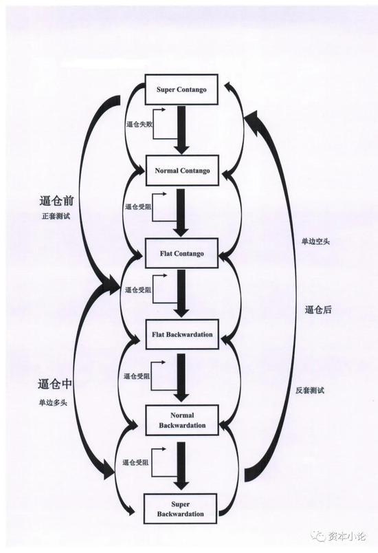 逼仓的结构变化汇总如下:Super Contango → Normal Contango→Flat Contango → Flat Backwardation→Normal Backwardation → Super Backwardation→Normal Backwardation → Flat Backwardation→Flat Contango → Normal Contango → Super Contango