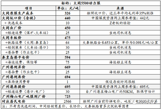 以大同地区生产的5500大卡动力煤为例:上周吨煤坑口价约为440元,按照35%的毛利率倒推,吨煤成本约为326元。假设从大同经大秦铁路运往秦皇岛,然后由秦皇岛港发往广州港,最终由广州港运抵广州梅山火电厂的话,那么吨煤到厂价将攀升至725元,较坑口价高出65%。