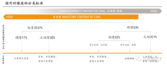 国外一般根据含碳量或热值对煤炭分类。热值也称发热量,表示单位质量(或体积)的燃料完全燃烧时所放出的热量。由于煤炭的热值与含碳量成正比,因此国外一般根据含碳量或热值将煤炭分为无烟煤、烟煤、次烟煤和褐煤4类。