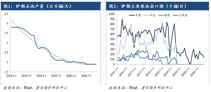 在美国退出伊朗核协议之前,伊朗是OPEC第四大产油国,日均出口量超过300万桶。自2019年5月美国全面禁止伊朗的原油买家继续从伊朗购买原油,伊朗原油出口量锐减,伊朗原油日出口量从高峰时期的280万桶下降到约10万桶。伊朗高度依赖石油出口的经济体系受到冲击,但由于伊朗的石化工业基础较强,即使在西方的制裁下,仍能保持着一定的出口量。其中相对出口较多的石化产品为甲醇、聚乙烯(或乙烯)、乙二醇、苯乙烯等。
