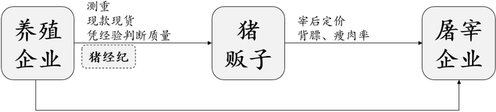 我国生猪贸易的主要模式为中间贸易,通常猪贩子作为中间贸易商衔接养殖企业以及屠宰企业。生猪贸易非常注重效率,猪贩子一般通过主观来判断质量,猪贩子是贸易主体,其承担了质量和运输的风险。出栏环节是生猪贸易节点,一般不会由中转贸易,生猪贸易的责任划断明确,质量争议一般不可追溯。