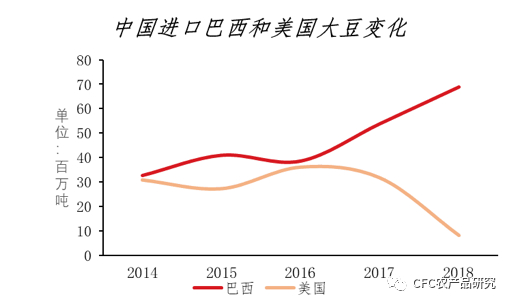 【中国进口巴西和美国大豆变化】