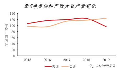 【近5年美国和巴西大豆产量变化】