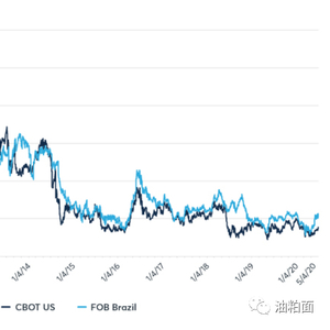 图1:巴西大豆离岸价与CBOT大豆期货