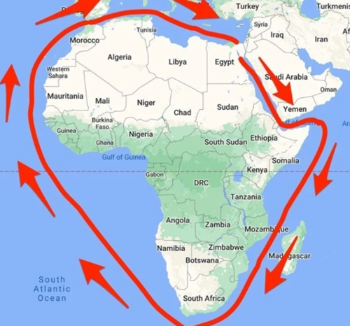 随着对搁浅货轮“长赐”号的救援工作持续,部分船只开始选择绕道南非,经好望角前往欧洲。