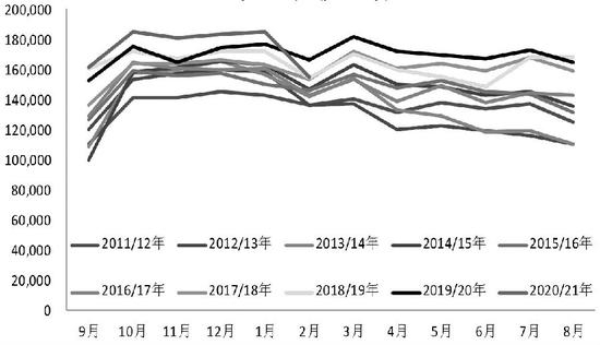图为NOPA美豆月度压榨量