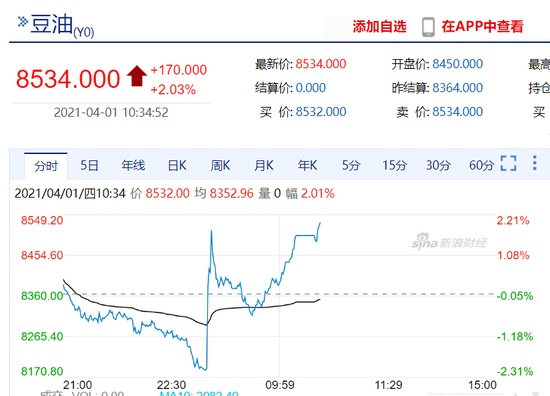 快讯:豆油主力合约走高 现报8534元/吨