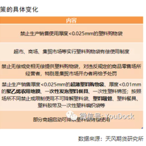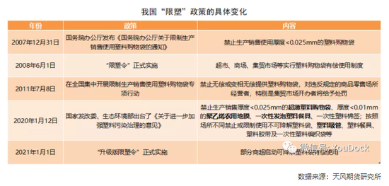 自2008年我国实行“限塑令”起,8年间商超的塑料购物袋累计减少约140万吨,对于控制塑料使用量有一定成效。然而,相对于限塑令实施之初,由于公民自律意识不足及监督惩罚力度较轻,仅80%塑料袋生产厂家逐步恢复生产,超薄塑料购物袋产量逐渐接近限塑前的水平。因此,今年起,号称“史上最严”的限塑政策明确规定了严禁、限制使用的塑料制品,管控重心放在购物袋、农膜及塑料吸管等日常使用量较大的产品上。