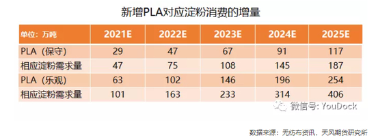 2025年,PLA替代将使淀粉消费增加约187-406万吨