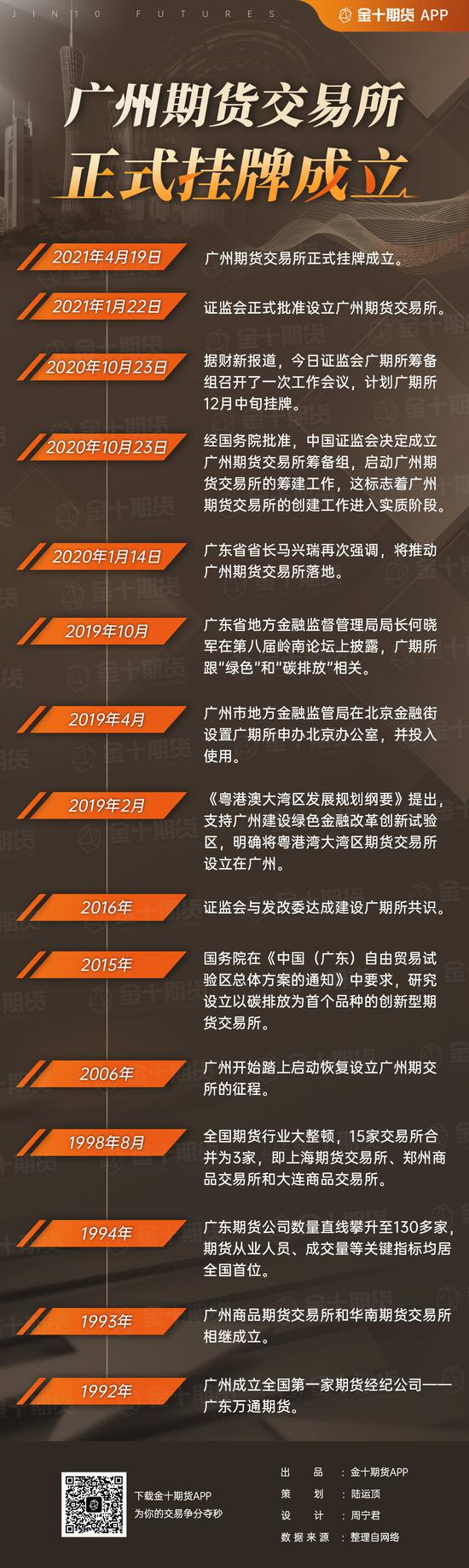 据金十期货APP 2021年4月19日,广州期货交易所揭牌仪式举行。广东省委书记李希、中国证监会主席易会满共同为广州期货交易所揭牌。广东省委副书记、省长马兴瑞,广东省委常委、广州市委书记张硕辅,广东省委常委、省委秘书长张福海参加揭牌仪式。中国证监会副主席方星海,广东副省长张新,广州市长温国辉分别致辞。设立广州期货交易所是落实党中央国务院决策部署,健全多层次资本市场体系、服务粤港澳大湾区和国家“一带一路”建设的重要举措。下一步,证监会将指导广州期货交易所,坚定不移贯彻新发展理念,立足服务实体经济、服务绿色发展,坚持市场化、法治化、国际化方向,以产品、制度、技术创新为引领,积极稳妥推进期货市场建设,更好服务我国生态文明建设和经济高质量发展。