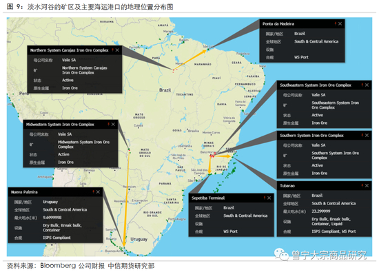 伊塔瓜伊Itaguai maritime terminal—Cia. Portuária Báıa de Sepetiba (CPBS):主要出口南方系统的铁矿石,CPBS是VALE的全资子公司,运营Itaguai码头,位于巴西里约热内卢de Janeiro州Sepetiba的Itaguai港口。2020年,该码头装载了1510万吨铁矿石。