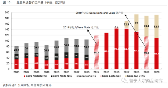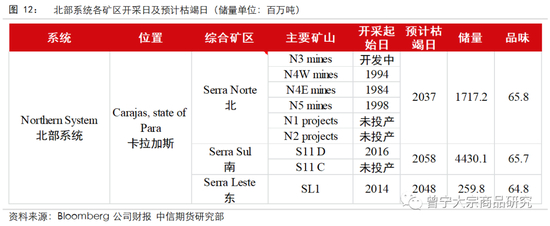 北部系统目前分为Serra Norte、Serra Sul和Serra Leste(北部、南部和东部)三个采矿综合体,Serra Norte是核心传统产区,Serra Sul是新兴产区但潜力十足,Serra Leste的生产规模相对较小。