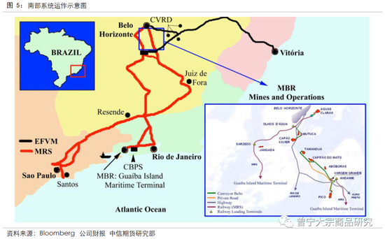 长期来看,需要重点关注的是北部系统的S11D(2024年,2000万吨/年)、东南部系统的Capanema项目(2023年,1400万吨/年)以及南部系统Vargem Grande矿区的物流运输瓶颈解决从而释放的产能(1600万吨/年)。