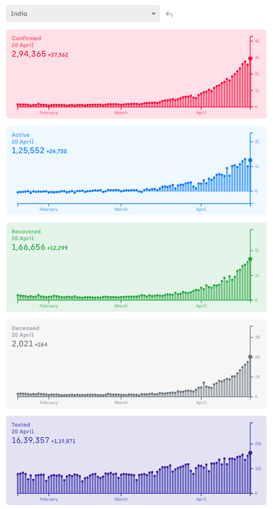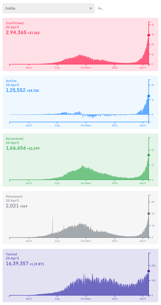 到了四月份,确诊人数可不是雨后春笋了,简直就像坐火箭,每天都刷新世界纪录。我知道很多人对印度公布的数据存疑——数据确实可以作假,但生活圈子、朋友圈子造不了假。听在印度这边工作的中国朋友讲,之前数据小的时候,同事里面没人确诊;现在随便问一个人就是确诊,甚至有些病死的人就是自己认识的人的家人。我经常在文章里提到的那个银行工作的邻居,她的上司经理这两天就中招了,传染了好几个人,症状一下子就严重到“无法呼吸”,她吓得赶紧逃回家连班也不上了;而去年我左邻右里确诊的那些人,则基本都是无症状。