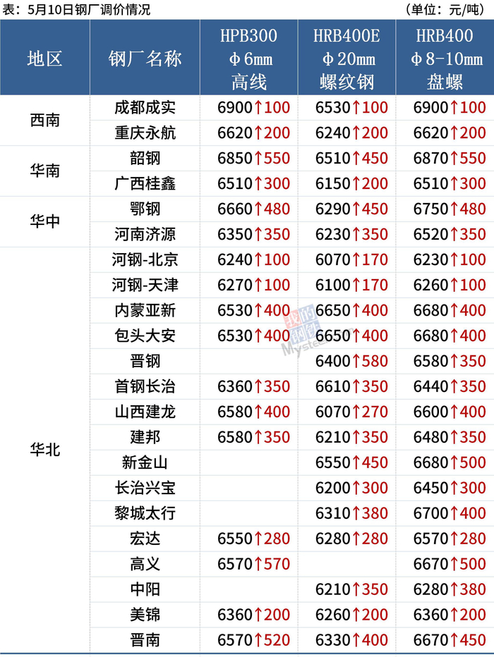 10日,国内21家钢厂上调出厂价100-580元/吨。