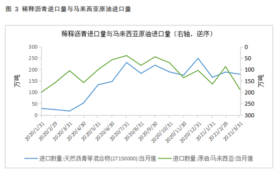 以稀释沥青名义进口原料不需要原油配额,也不需要缴纳消费税,同时在低油价时期缴纳的关税也低(甚至通过中国-东盟自贸区协定享受零关税),所以对于地炼而言,稀释沥青是性价比较高的原料。而在此之前,也就是2019年,Merey原油在马来西亚通过调和或者更换运输船只后更名为Singma或者Mal Blend等油种,以马来西亚原油的名义被进口到中国。随着稀释沥青进口量的增加,马来西亚原油进口量出现了降低。