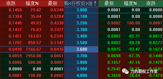 试想一下,假如在到期日上午开盘后的一小时内,标的指数高开高走,那么这个时候,一定还很容易让人“错觉”当天的认购会不会发生“末日轮”,只要这么想的交易者还比较多,那么这份买购就依然会被暂时赋予溢价,然而到了下午,真的到了“伤停补时”阶段了,很难指望指数在最后一两个小时再拉出2%以上的奇迹了,一旦市场上意识到这点的交易者开始变多,那么这份买购的价格就会迅速回落。