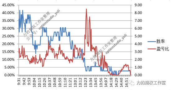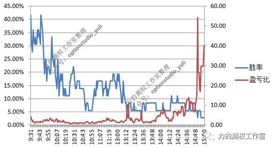 图:过去三年,到期日持有虚1 档认沽,每一分钟的历史“胜率”与“赔率”
