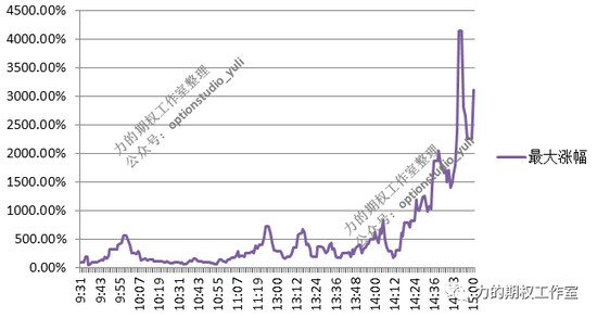 图:过去三年,到期日持有虚1 档认沽,每一分钟的历史“最大涨幅”